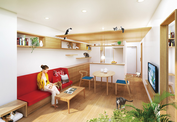 このプランは、オリジナルの設備や家具で、臭いや猫用品とインテリアのミスマッチなどの飼い主の悩みを解決。